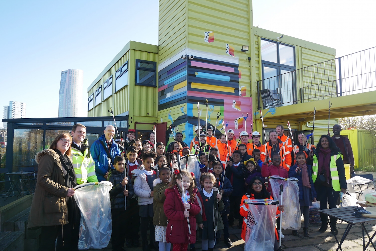 We had staff and partners from Thames Water, London Borough of Newham, Poplar HARCA, Dot Dot Dot, V22 and the View Tube, as well as school children. All together we made up an impressive army of litter pickers. The Greenway around the Viewtube was quite clear already (thanks in large part to our efforts in March), so we worked by the canal and the Greenway access points. Our volunteering team did a super job and we filled more than 30 bags of rubbish in a couple of hours.